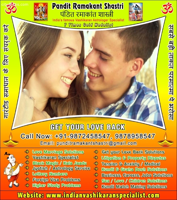 Pandit Ramakant Shastri is Indian Vashikaran specialist has expertise in Voodoo Black Magic Specialist, Get your Love Back, Love Breakup Solutions, Women Love Vashikaran, Black Magic Guru Ji, Love Guru Tantrik, Women Vashikaran, Girlfriend Vashikaran, Boyfriend Vashikaran, Tantrik Baba Ji, Astrology Solutions, Havan Pandit, Yagya Pooja Pandit, Kudli Dosh Solutions Expert, Match Making Specialist, Love Marriage Specialist, Business Loss Solutions, Foreign Visa Solutions, Illness Medical Problem Solutions, Kala Jadu Vashikaran, Property Disputes Solutions, Lottery Number Solutions in India, Punjab, Hoshiarpur, Canada, USA, Australia, UK, New Zealand, France, Norway, France, Nepal http://www.indianvashikaranspecialist.com contact numbers +91-9872458547, +91-9878958547 punditramakantshastri@gWeb page:
