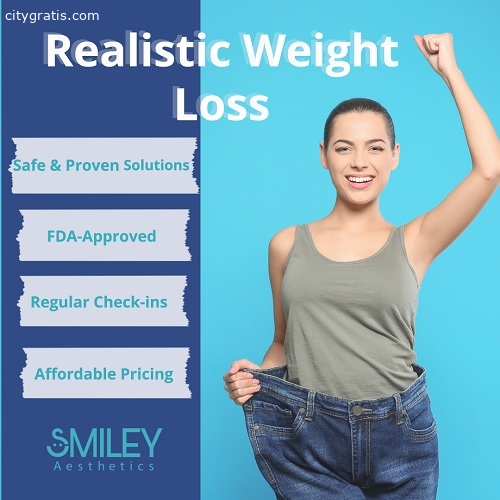 Welcome to Smiley Aesthetics Osage Beach, where we provide weight loss treatments that actually work! Say goodbye to endless diets and exercises with no results, and hello to our Osage Beach Semaglutide weight loss treatment. Our Weight Loss in Osage Beach MO team of experienced professionals is here to guide you through this proven method, designed to help you achieve your desired body shape. Our program is tailored to meet your specific needs and goals, with a comprehensive assessment to determine your weight loss needs and create a personalized plan just for you.Business Hours : Mon - Fri 9am to 6pm