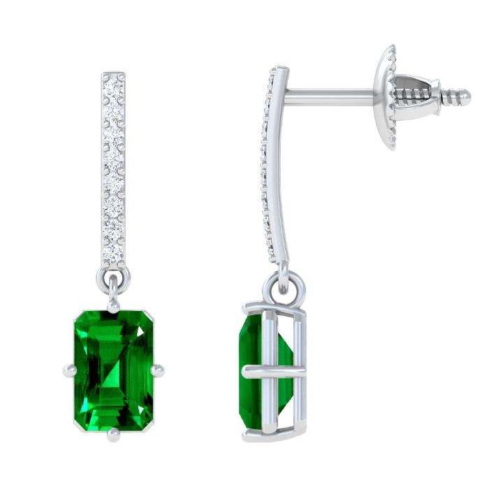 These beautiful dangling earrings have sixteen round prong set diamonds with an approximate total weight of 0.13cts. set around the 2.00ct. emerald cut emerald match pair. Browse the collection of emerald stud earrings from GemsNY. 20% Off. Free Shipping.Product Details: